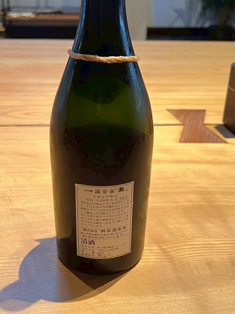 始めましての桝田酒造さん、まずは満寿泉「寿」純米大吟醸プラチナを、「火入れ」と「生酒」で飲み比べ。こちら720mlで8千円くらいする!お酒で、なるほど美味!