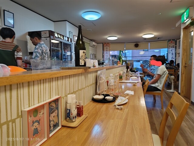 席はL字カウンター7席。東京のギッチギチに詰めさせられるのと違い、