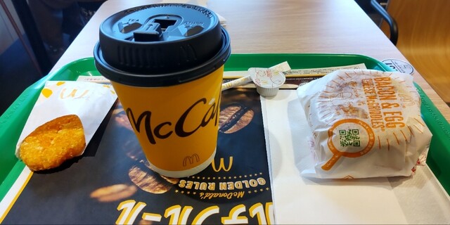 リニューアルOPEN後初めて訪問。さてさてどんな風に変わったのかなぁ〜っと。駅前のポスターで大体の店内の様子は見たけど、以前の店の印象が抜け切れず、正直あんまり期待していませんでした。いやいや、めっちゃ良うなってるや〜ん!先ず入り口入ったら案内係のお姉さんがひとり立っていて元気よく愛想よく案内してくれました。→もうこれだけで上機嫌な私。そしてキャッシュレスのセルフのお会計も(写メ取れてなかった)数台あって画期的!スムーズに会計後はベテランさんぽい方が笑顔で商品を提供。接客も美味しさに反映するねぇ。マックグリドルもこんなにふわふわやったっけ?過去1美味しすぎ。色々値上げされてるけどお得感すら感じる。私も日々接客業なんやけど、あぁ、明るく元気よく間違いなかった。改めて気づかせてくれてありがとうお姉さん。私も頑張る。気持ち良い1日が過ごせそう。星あと1つ分はこれからも良いまま継続してほしいから。