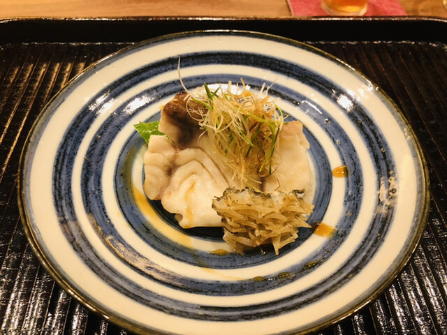 ヤイトハタの炭焼きと万願寺とうがらしのお酢ソース