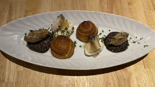 鮑が非常に柔らかく、食感が楽しく、それを包み込むパイ生地のサクサク感と帆立とソースの旨みがこれまた絶品でした!