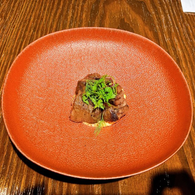 表面には薪火の香り、噛むほどに牛の脂の旨みが広がります。添えられた生の黒胡椒と合わせると、特に印象的でした。