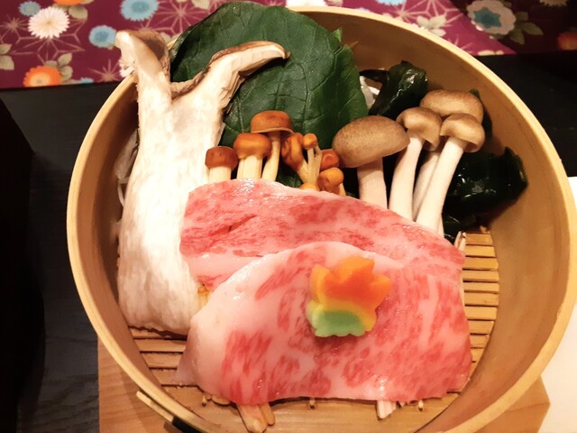 まず前菜の<特製肉じゃが>マッシュポテトを出し汁でのばしゴロッとした柔らかい牛肉が乗っている斬新な肉じゃがです。