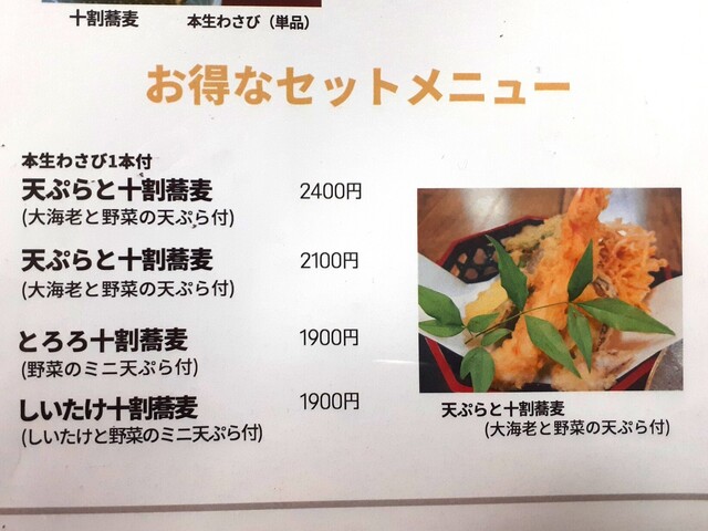 注文は【天ぷらと十割蕎麦】2100円、+300円で生わさびが1本付いてきて