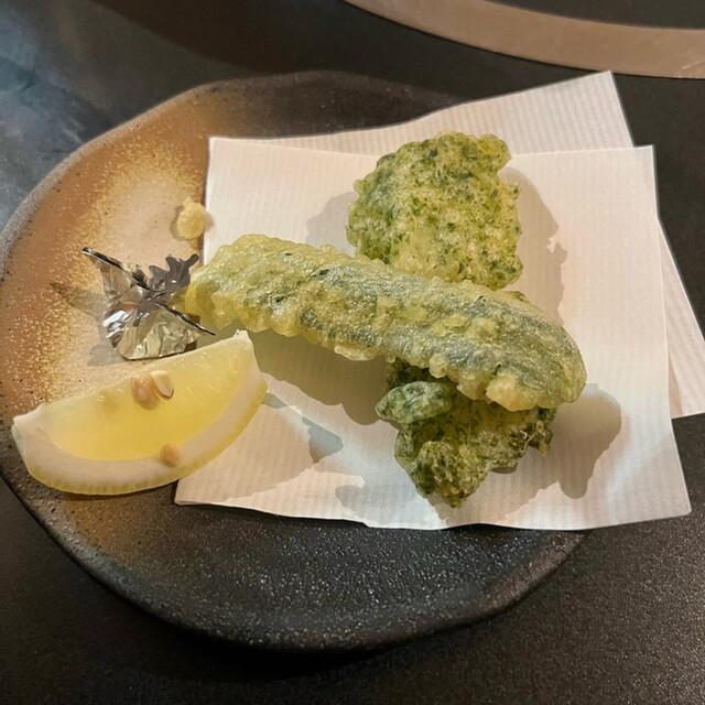 コース料理は、毎月メニューが変わり、海鮮が刺身、煮物、焼き物、天ぷらなど揚げ物へと多彩な流れのコースとして供される。流行っているお店だけに食材の鮮度の良さを感じるのもうれしい。