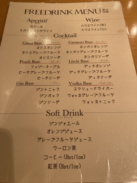しかも飲み放題とは別にコーヒーなど飲み物つき。