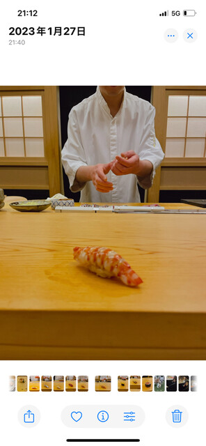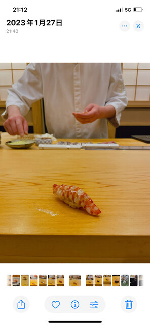 シャリとの相性も抜群で、絶妙な赤酢の酸味が海老の風味をより引き立てていました。