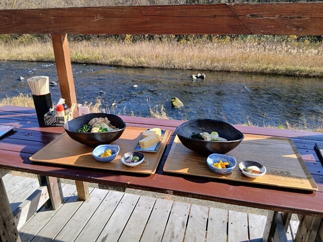 待ちがあってもこの川沿いの席が良い(* >ω<)