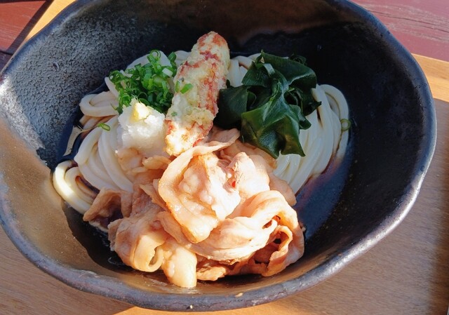 夫はぶっかけ肉うどん(950円)を大盛りで♫