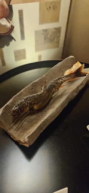 島根県高津川の鮎塩焼き ナスの皮の黒ごま和え