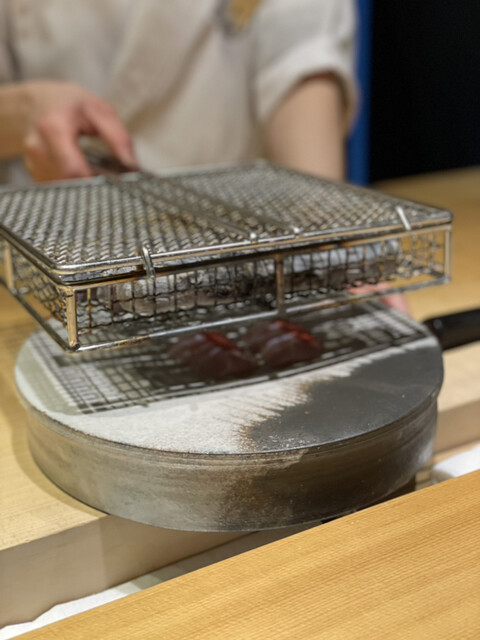 熟成された金目鯛は炭で炙ることで、身がふっくらし、口の中でトロけた