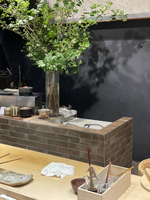 前回伺った時は黒い壁がシックなL字カウンターだったが、食事に集中出来るように真っ直ぐなカウンターにしたらしい