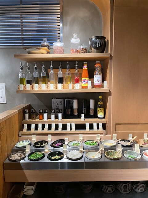 そしてタレ場に行って、30種類以上のタレ&薬味やスパイスから、オリジナルのタレを作成する