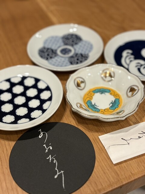店内は明るく、ブルーがアクセントとなっており、テーブルに並べられたブルーの皿も美しい