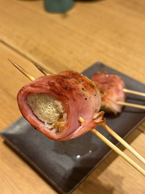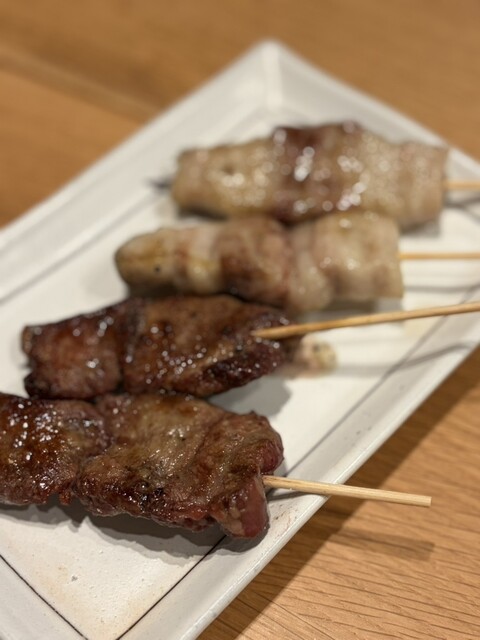 最初の焼き串は肉2種で、初めて食べる林SPF豚バラの脂の甘さに驚く