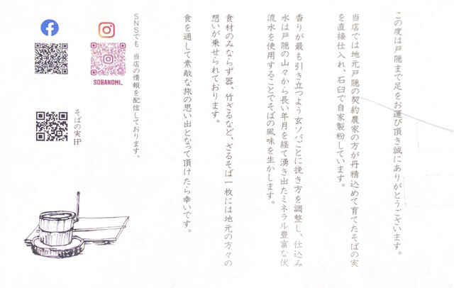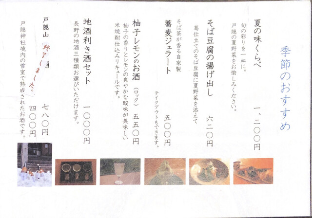 希少な戸隠在来を使ったそば粉100%の生粉打ちそばとの説明を読み、再訪の機会があったら必ず食べてみようと思った。