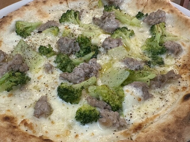 モッツァレラベースにたっぷりのブロッコリーと自家製ソーセージ、食感豊かで食べ応え充分。