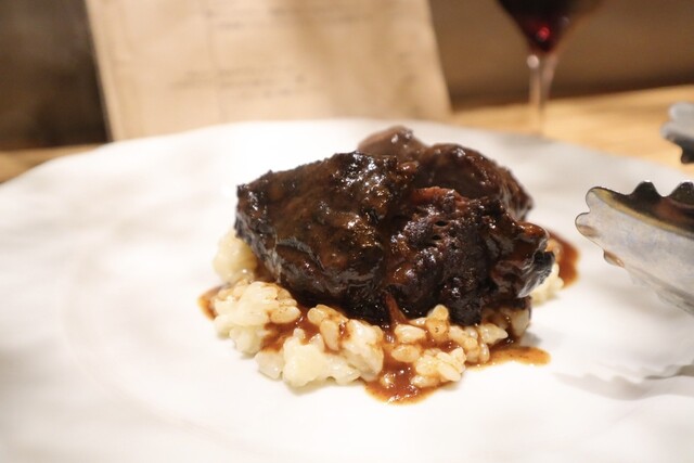 メインのホホ肉の赤ワイン煮込みは、ナイフの必要がない程柔らかくホロホロで…