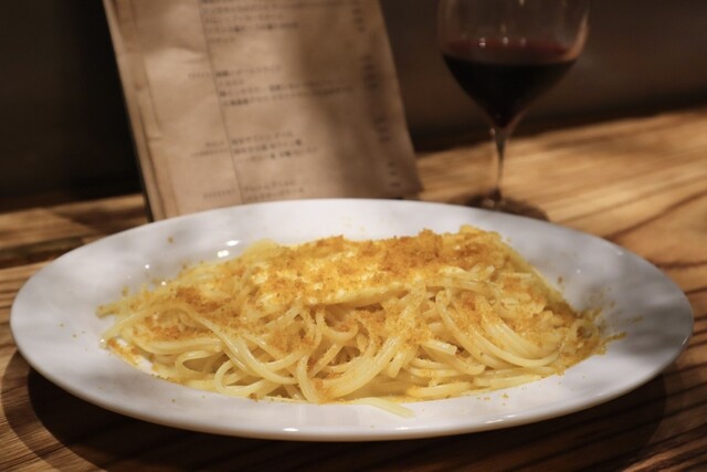 前菜の他に必ず注文してみたかったお料理が、発酵バターとカラスミパスタ。
