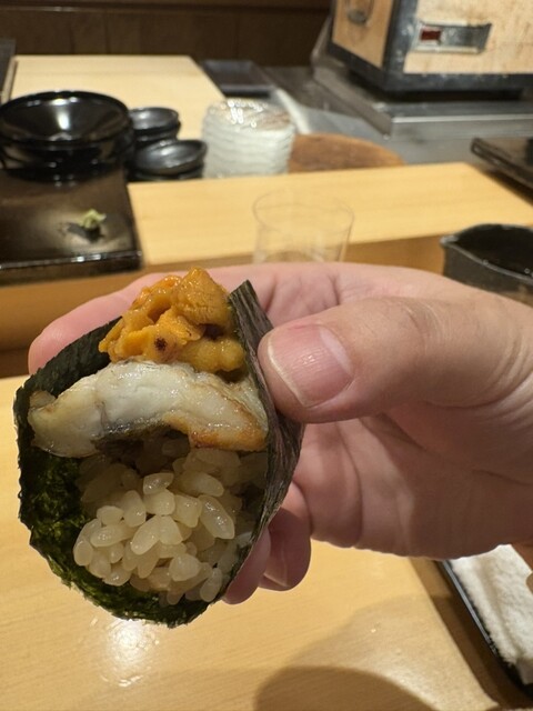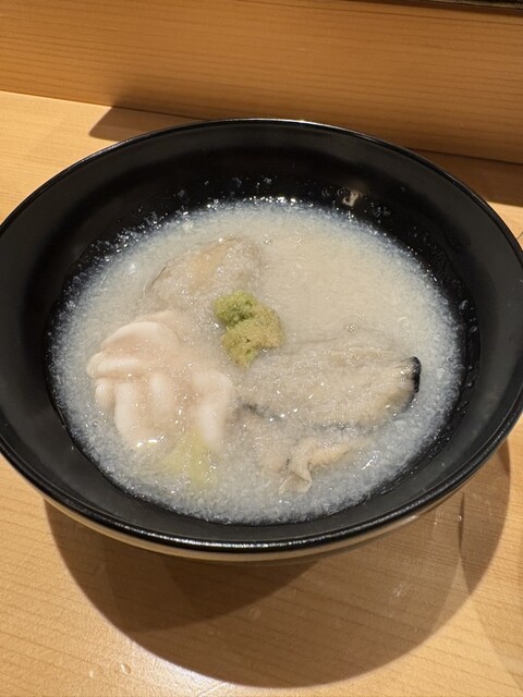 最初に答えを物申しますが、イカと煮蛤は今世紀最大の美味さ!落ち着いた白木カウンター6名席、会社役員忘年会にうってつけのシチュエーション。最初は無骨な職人気質の大将も慣れ親しんだらニッコリ笑顔。ウェイトレスさんが可愛いこと。おっといけねぇ、食事のコメント記載しないとね。食事の出すタイミングや酒の合わせ方、最高レベルでした。もちろん、料理、創作感、温度感、最高レベルと感じましたよ。またお邪魔しますね〜。