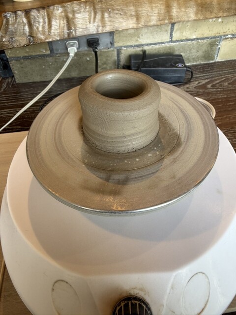 まずはテーブルで、小さいろくろを回して、陶芸体験が始まります。ろくろが小さいので、小さい作品だけになってしまいますが、お手軽に楽しめるのが良いですね。