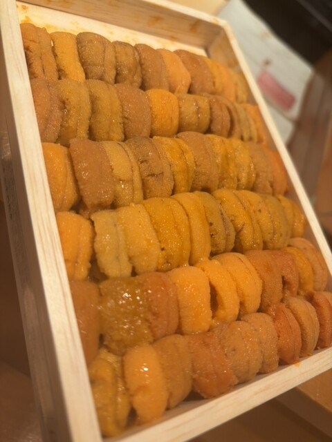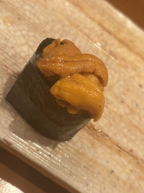 雲丹軍艦。旗艦は雲丹。これでもかとバフンウニが盛られて至高の幸せ。