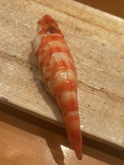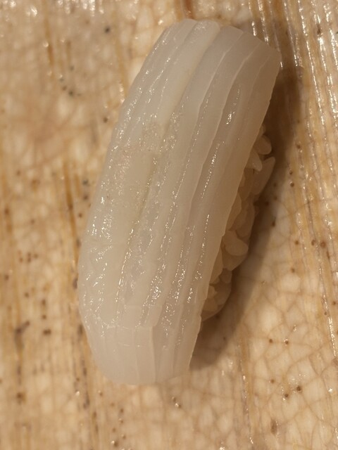 スミイカ 柚子で。厚い。江戸前の烏賊はやはりスミイカだ。弾ける食感。その後襲ってくる気品ある甘みと香り。シャリの味、握りの技、包丁の技全てがダイレクトに伝わるネタだ。
