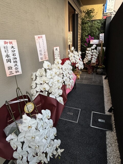 お店の場所が若干奥に移動していた。沢山のお祝いのお花は人気の証。