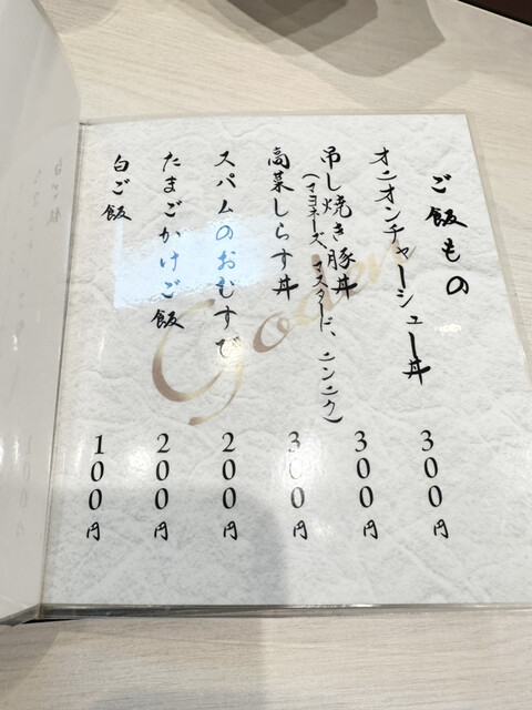 いつもは、ざるチャーシュー(ざるつけ麺のチャーシュー増し版)をオーダーするのですが、今日は、ご飯ものメニューも試してみるべく、