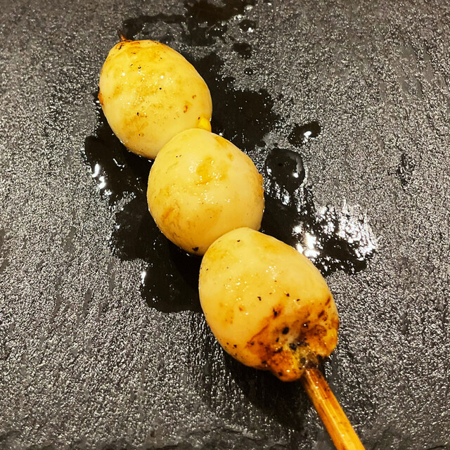 みんな醤油かけてたけど、初のお店で、焼鳥の塩味が不明なので掛けないで待つタイプ。