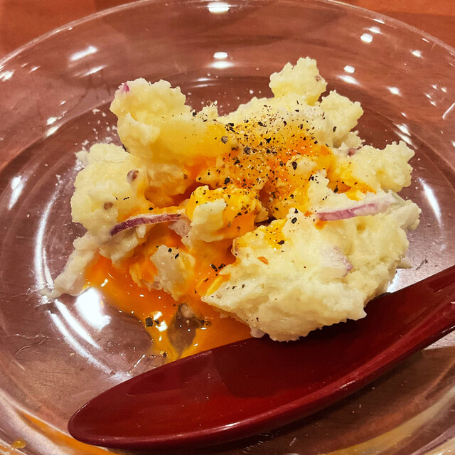 卵黄がかかっていて、スライス玉ねぎが効きすぎかな?って思ったけど、焼鳥を頂きながらのコレはあり!