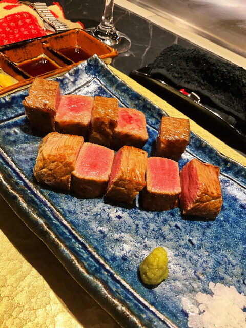 青森県産サーロイン、静岡県産シャトーブリアン食べ比べみたいな感じ。普通に白ご飯が欲しくなる!本当に美味しいのは、塩とワサビで充分!