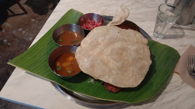 ここのライスはパスマティライスを使用。パラパラしていてカレーと絡めるとサラサラと口に入ります。揚げパンもカレーとぴったりで美味しいです。最後には、松重豊さんと一緒でチキンカレーと魚カレーとトーレンとパスマティライスを混ぜて食べました。