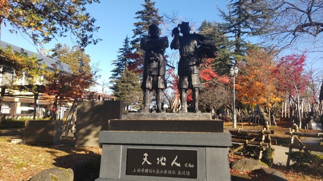 上杉謙信、上杉景勝、直江兼続、上杉鷹山の銅像を上杉神社で見られました。上杉景勝や直江兼続を見ると大河ドラマの天地人を思い出します。