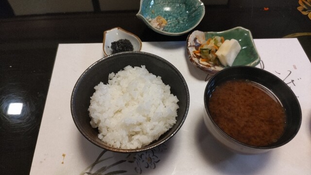 食事はご飯に赤だし、さらにアカモクの海苔佃煮。アカモク佃煮はこれだけでご飯が進んでしまうほどの美味しさでした。