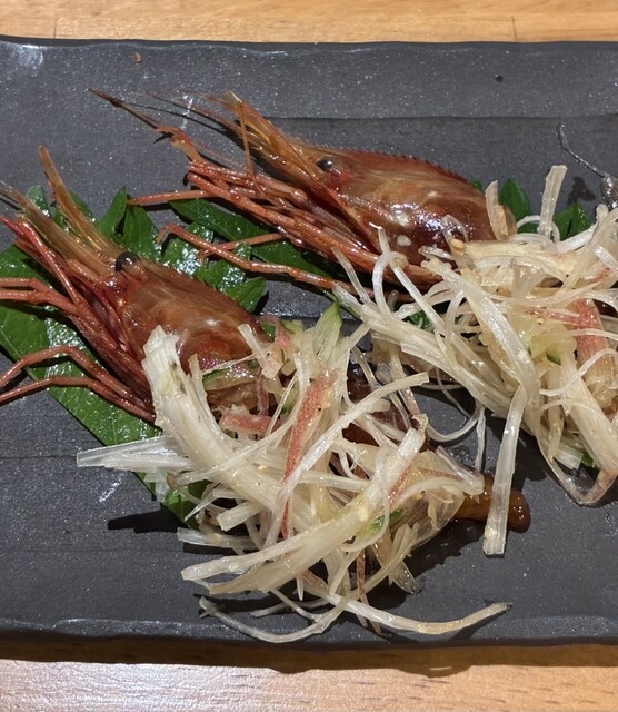 ◯牡丹エビの紹興酒づけ。ミョウガとエビの甘み!