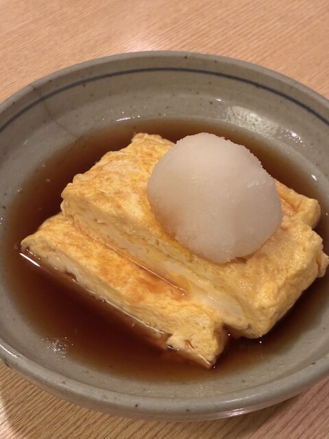 ◯だし巻き。安定の味。だし巻きの出汁だけでなく、スープも。大根おろしとあいまって、うまい!