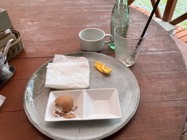 バーガーを調理中にサービスの茹でたまごを持った来てくれたので、頂いた。景色がいいので茹でたまごも旨い❗️