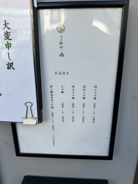 らぁ麺や 嶋(西新宿五丁目、中野新橋、初台/ラーメン、つけ麺)