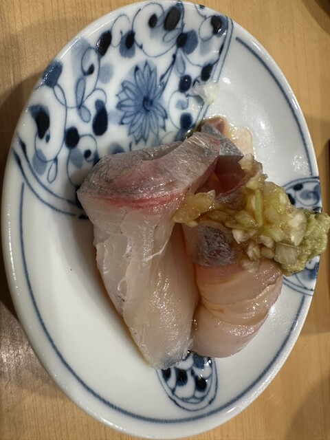 握りは大トロ、カマトロ、鰯、ニシン、新子、春子鯛、太刀魚、煮蛤を注文。春子鯛は昆布締めであまりの美味しさに二貫注文した。