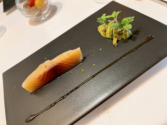 残暑も厳しい今秋に合うポルチーニをアイスにしてバンズで挟んだバーガーから始まり。柿やイカ、そしてイカ墨を練ったパスタ、マスは生と思いきや低温調理で丁寧に仕上げられ。終始テンションが上がっておりました。