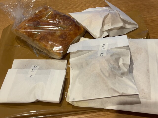 大好きなオリーブのパンと、チョコたくさん、塩バターパン、そしてクワトロフォルマッジ、フォルカッチャと購入。