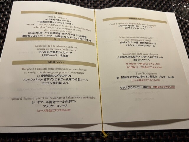 ハモの湯引きバルサミコ風味/揚げ茄子とピューレオマール海老コンソメジュレの取り合わせ
