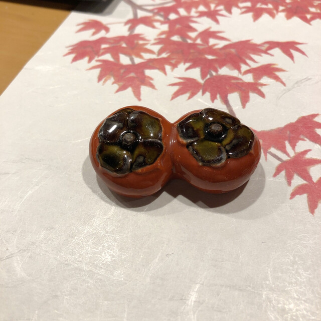 箸置きは柿。目で楽しませてくれます。