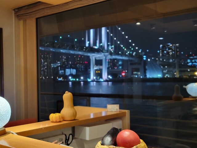 シェフさんが料理を提供しながら、食材から外の景色まで細かく説明してくださいます。窓から見える建物や停泊している大型船のことなど、あらゆる情報をご存じなので、普段からお気を配って、勉強もされていらっしゃるんだと思いました。