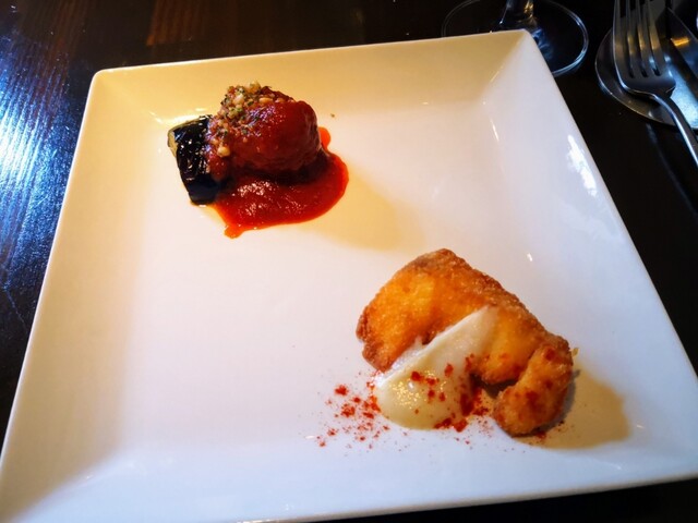 ランチタイムは基本コース一種類のみ。事前にお願いすればスペシャルランチもあるようだが、内容的にレギュラーで十分。冷製タパス、サラダ、ピンチョス、温製タパスと順番に出てきて、最後に選べるパエリアが登場。ワインも頼んでデザートまで2時間ゆっくり楽しませてもらった。
