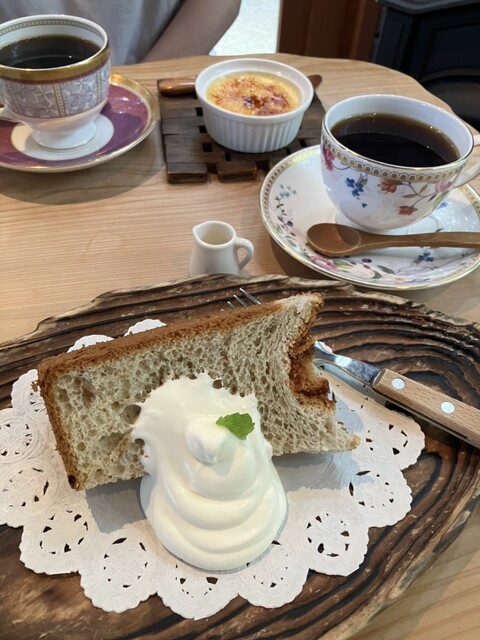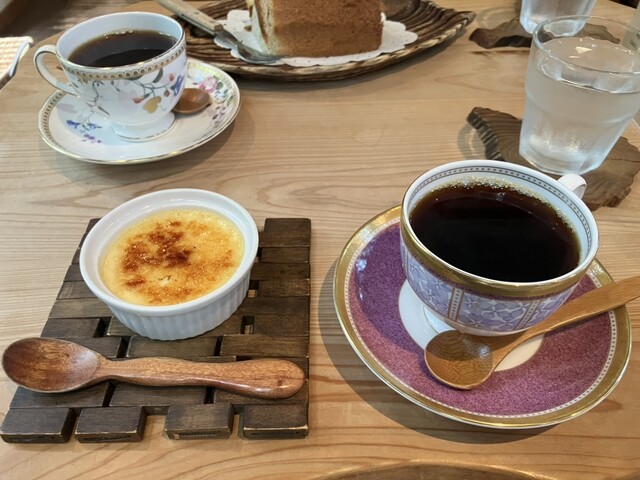 他の人が頼んでいたコーヒーゼリーも美味しそうでした。シフォンケーキは3種類から選べました。コーヒーも指定された中から選ぶことができてよかったです。ブリュレはたまご感がしっかりで美味しかったです。ごちそうさまでした!