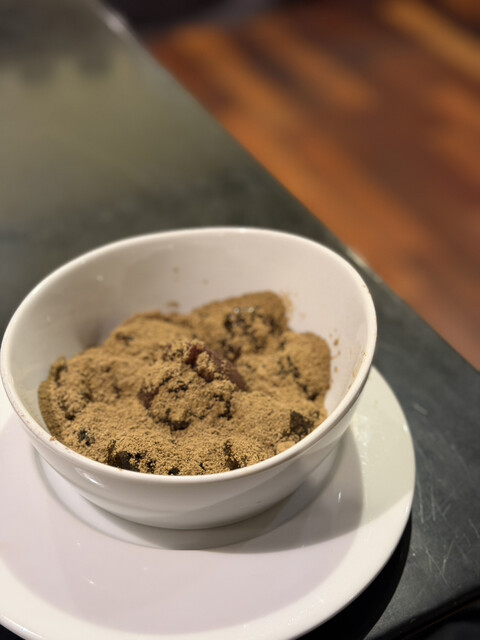 お茶請けとして羊羹も付いてきますが、ほうじ茶きなこのわらび餅も一緒に頼みます