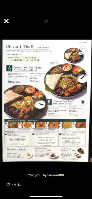ビリヤニにカレーが2種、チキンもついて、いろいろ楽しめます。美味しいです!