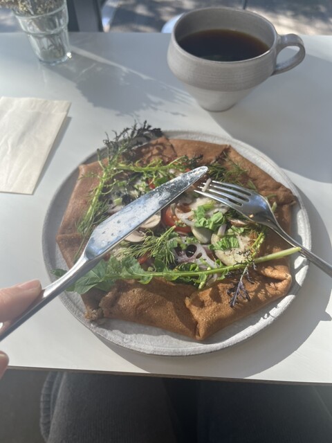 見た目的に野菜だけなので、うーんと思ったのですが、味付けがしっかりしていて、クレープ生地と合い、こちらもとても美味しかったです。